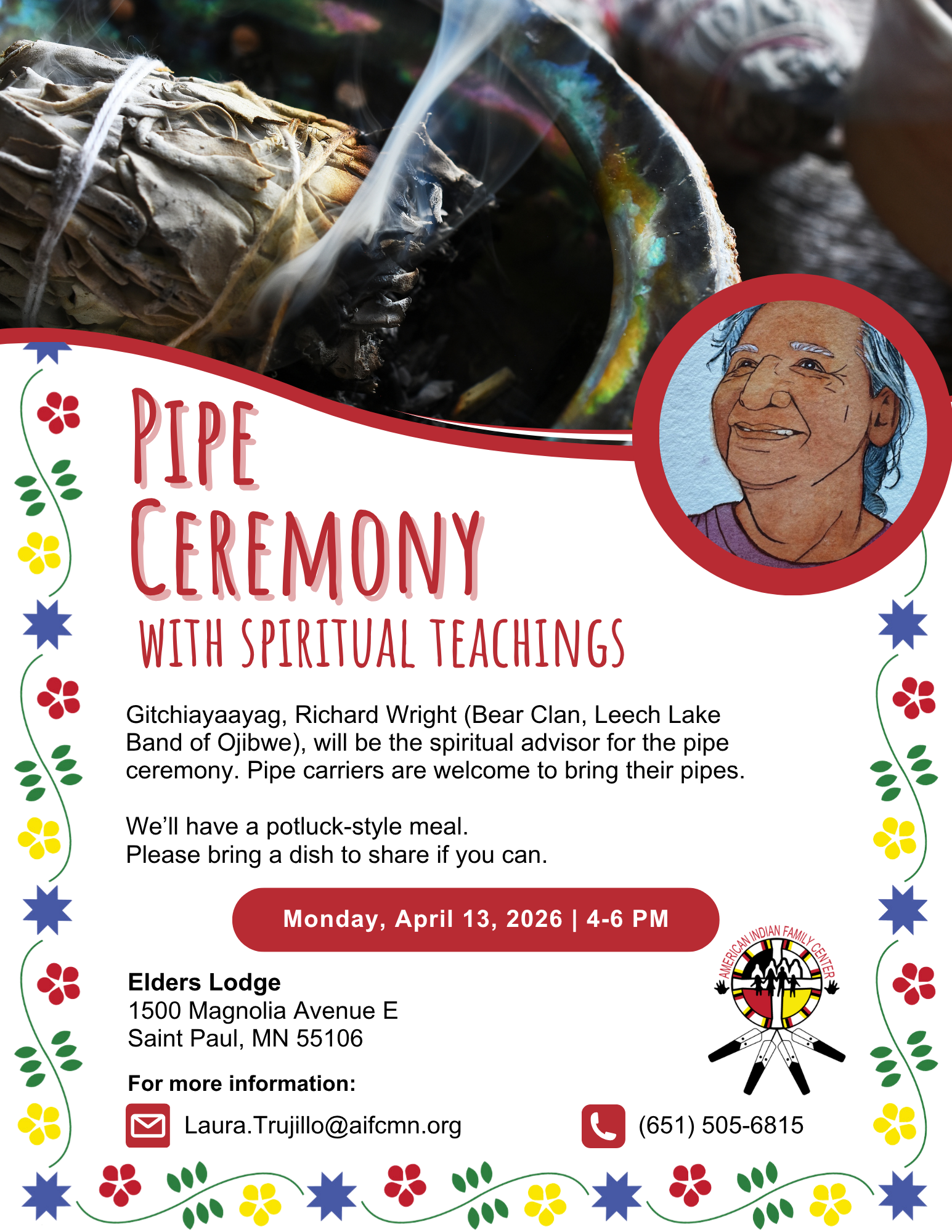 🪶 AIFC Elder Advisory Council (EAC) invites you to a Pipe Ceremony with Spiritual Teachings on Monday, April 13, 2026, from 4:00 to 6:00 PM.