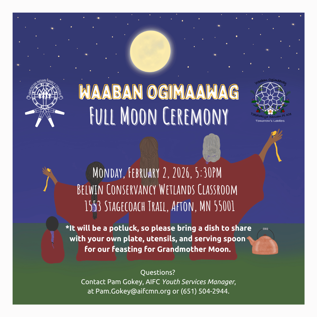 🌕 AIFC Waaban Ogimaawag (Tomorrow’s Leaders) invites you to a Full Moon Ceremony on Monday, February 2, 2026, at 5:30PM.