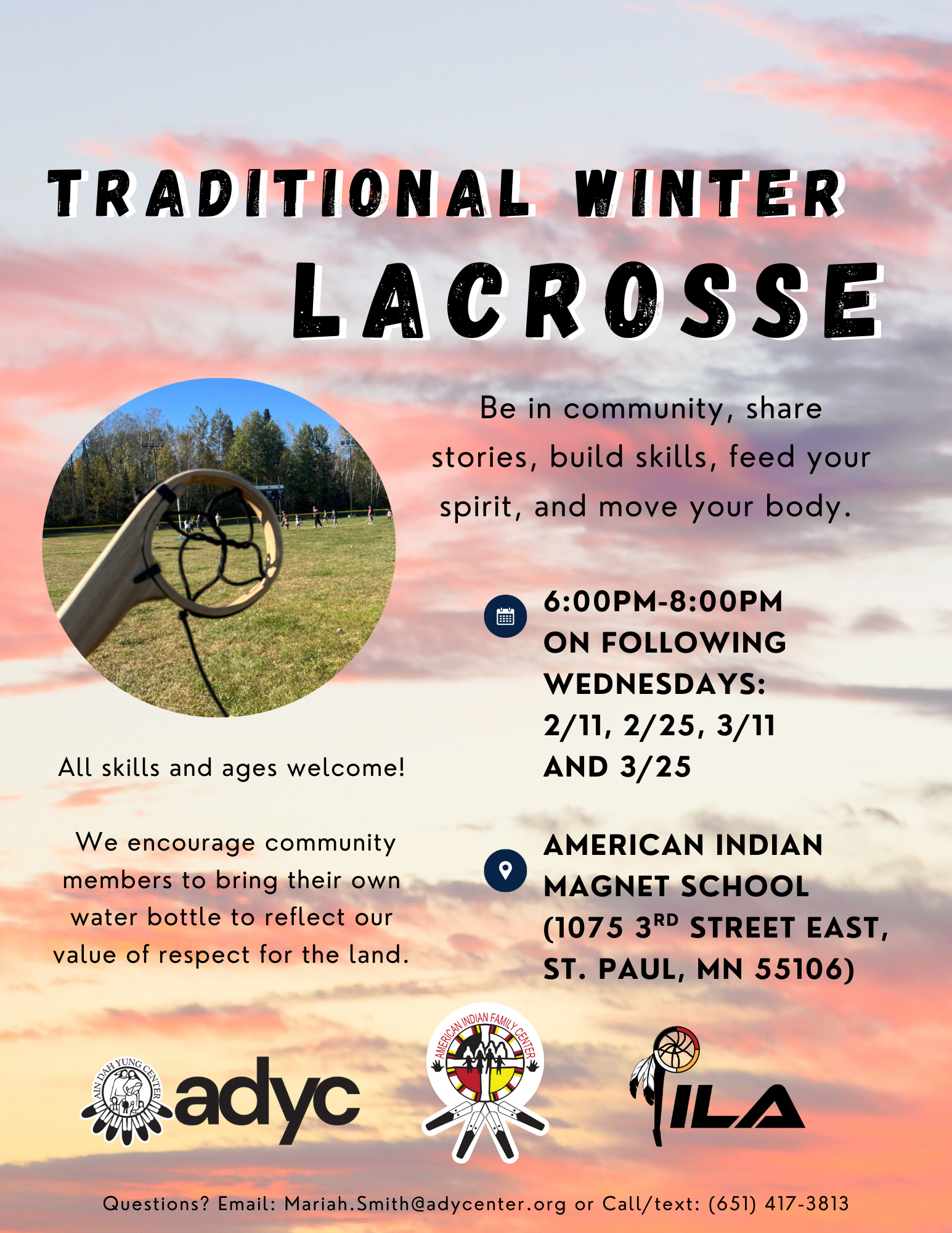 February 25 @ 6:00 pm - 8:00 pm Traditional Winter Lacrosse