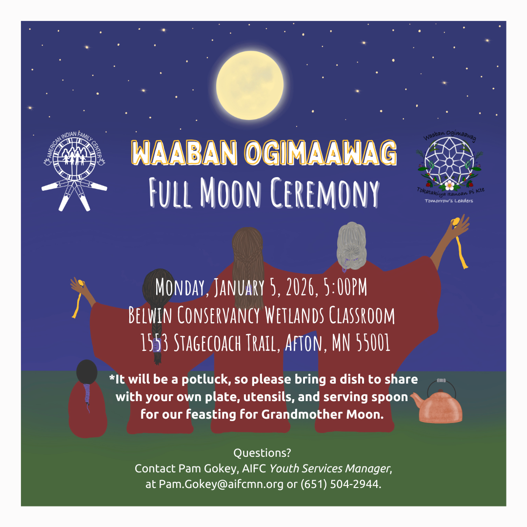 Join AIFC Youth Services, Waaban Ogimaawag (Tomorrow's Leaders), and AIFC Youth-Focused Healing Generations Therapists for "Life Skills for Youth: Suicide & Bullying Awareness". In this series, we will address bullying, suicide awareness, and healthy ways to deal with emotions through: suicide & bullying awareness discussion creative & interactive activities healthy anger release activities Open to […]